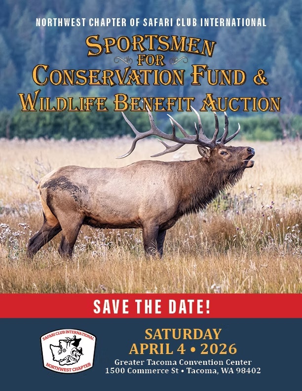 Save the date! April 4, 2026 is the Northwest Chapter of Safari Club International annual banquet and auction! Click HERE for additional information and updates as they become available! See you there!